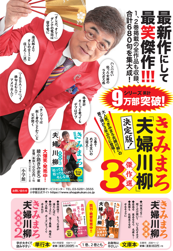 「令和」時代も、これ1冊で夫婦そろって大爆笑! シリーズ累計9万部突破! 新時代「令和」に合わせて、大人気の『決定版! きみまろ「夫婦川柳」傑作選 3』